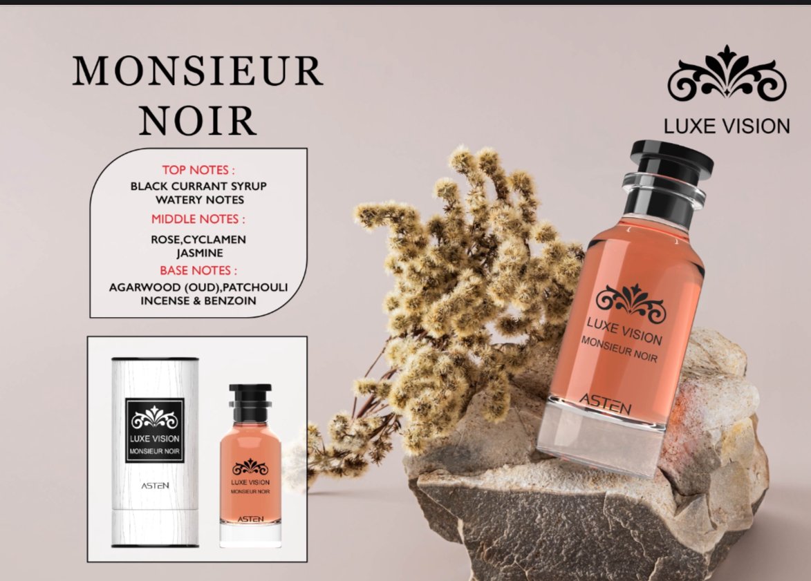 TOP NOTES : BLACK CURRANT SYRUP WAT E RY N O T E S MIDDLE NOTES : ROSE, CYCLAMEN JASMINE BASE NOTES : AGARWOOD (OUD), PATCHOULI INCENSE & B E N Z O I N whats in the box 1 x 100 ml edp perfume